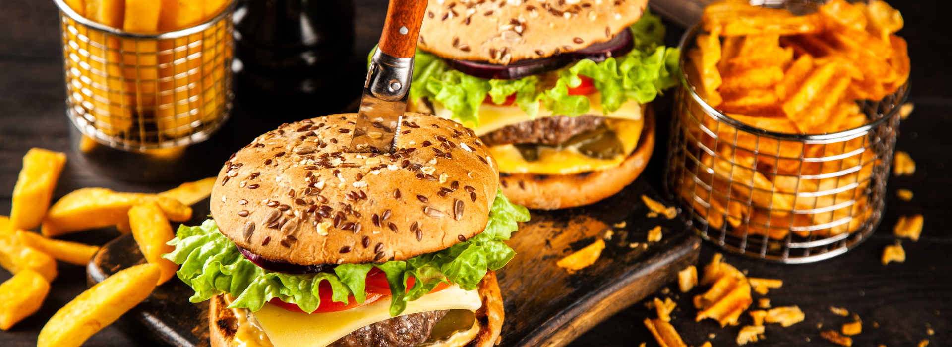 Juicy, flavorful burger with fresh salad , pickles , homemade burger sauce, and a toasted bun. Perfect!